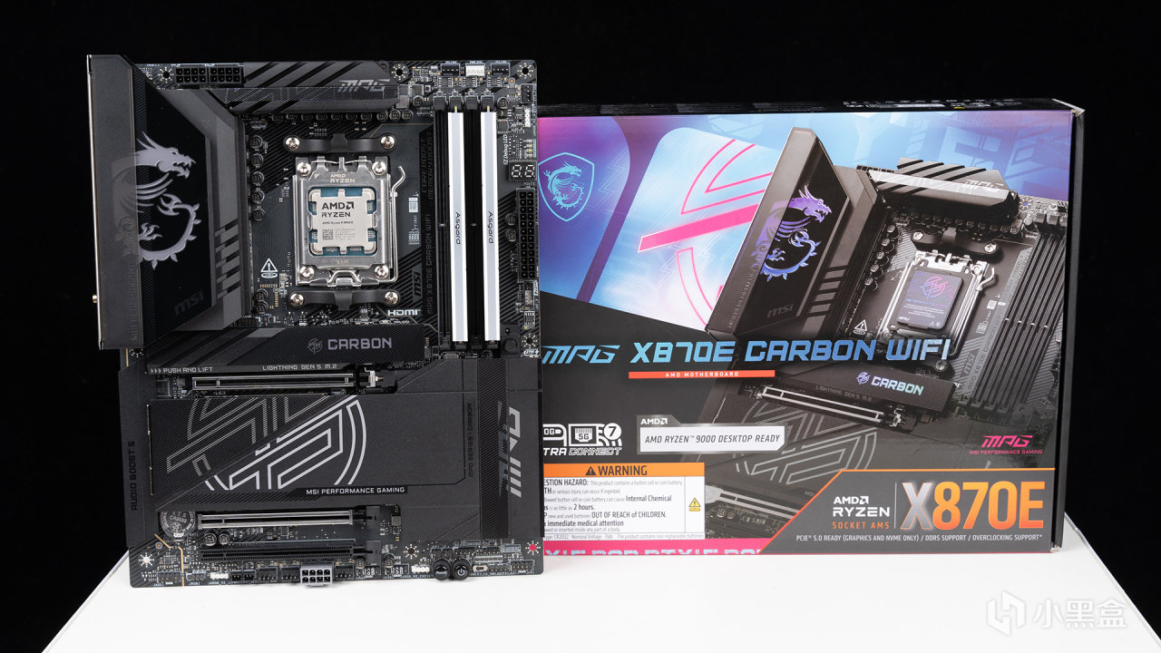 爲了最大程度挖掘這套內存條的潛力,配備測試的主板來自微星MPG X870E CARBON WIFI暗黑,外觀設計延續了暗黑家族的碳纖維風格,也在I/O處加入了黑鏡質感進行“調味”,供電用料妥妥是越級般地存在——配備18+2+1並聯式供電,而VCORE部分的MOS最大電流達110A,最佳拍檔當然就是旗艦級銳龍9,DDR5內存插槽最高可支持超頻至8400MHz+,對於這次的作業簡直就是小巫見大巫。