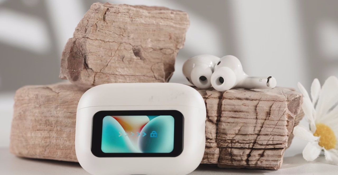 然後就是一款非常神奇的耳機戴靈T5pro了,堪稱“真學生黨福利”,外形是大家非常熟悉的深圳蘋果風格,充電倉上帶有一個顯示屏,要是單看這些在電商平臺一搜就一大堆。