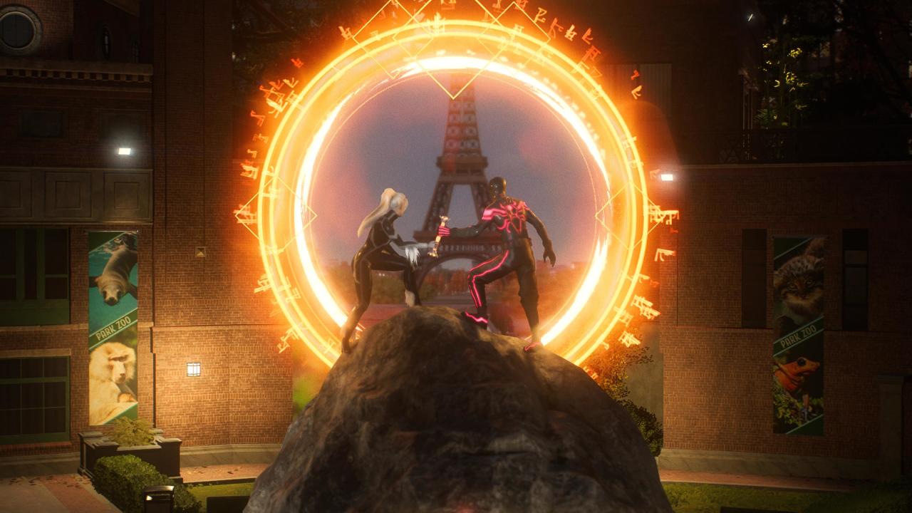 操作迈尔斯,找到自己和菲尼共同赢得的科研奖杯(使用黑蜘蛛,在金融区教堂楼顶时钟处找到科研奖杯,玩过黑蜘蛛的应该都有点印象,在被犀牛人狠狠暴打的教堂那里)