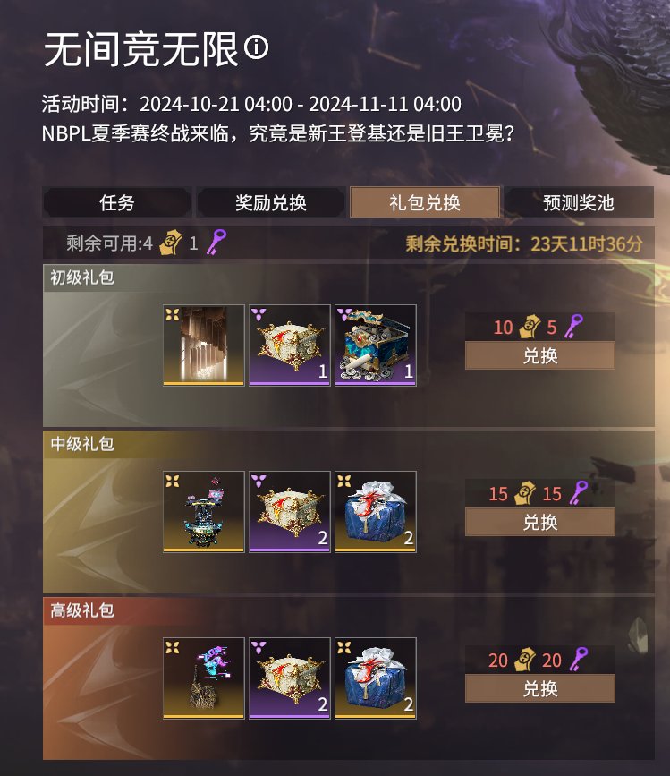 鑰匙獲得:復活賽4把+積分賽10把+決賽20把+賽事答題15把。共計49把