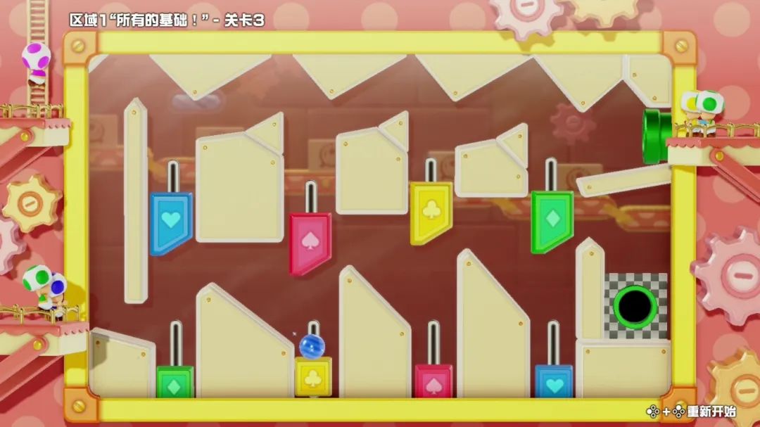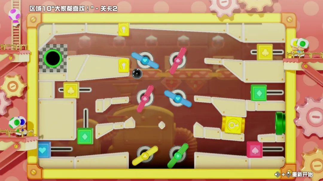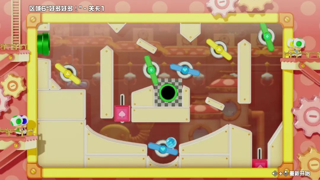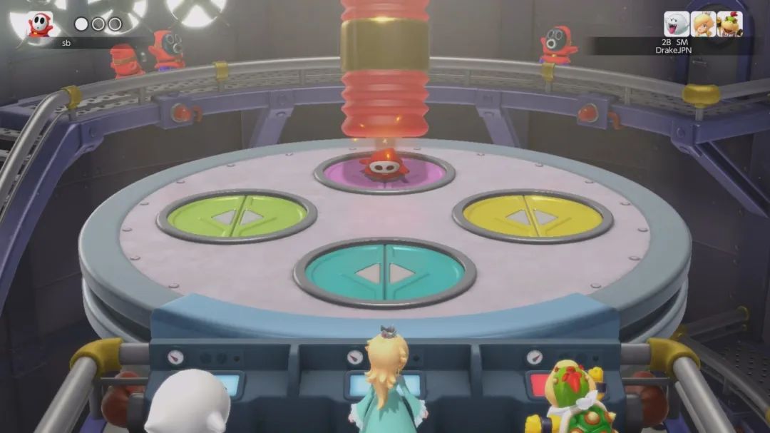 奇諾比奧工廠是我非常喜歡的新模式,它也屬於那種能讓玩家間不經意地交流起來的玩法,很適合炒熱派對氛圍。四名玩家將控制場景中的機關,將小球運至終點,乍一看,很簡單。可實際玩起來可以說是,手和腦子都要打結了。