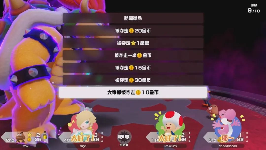 該玩法的競技性很強,有明確的分數壓力,和傳統派對模式的樂趣截然不同。每輪小遊戲都是玩家各玩各的,無非是扔點道具互相干擾,缺少直接對抗還是差點意思。