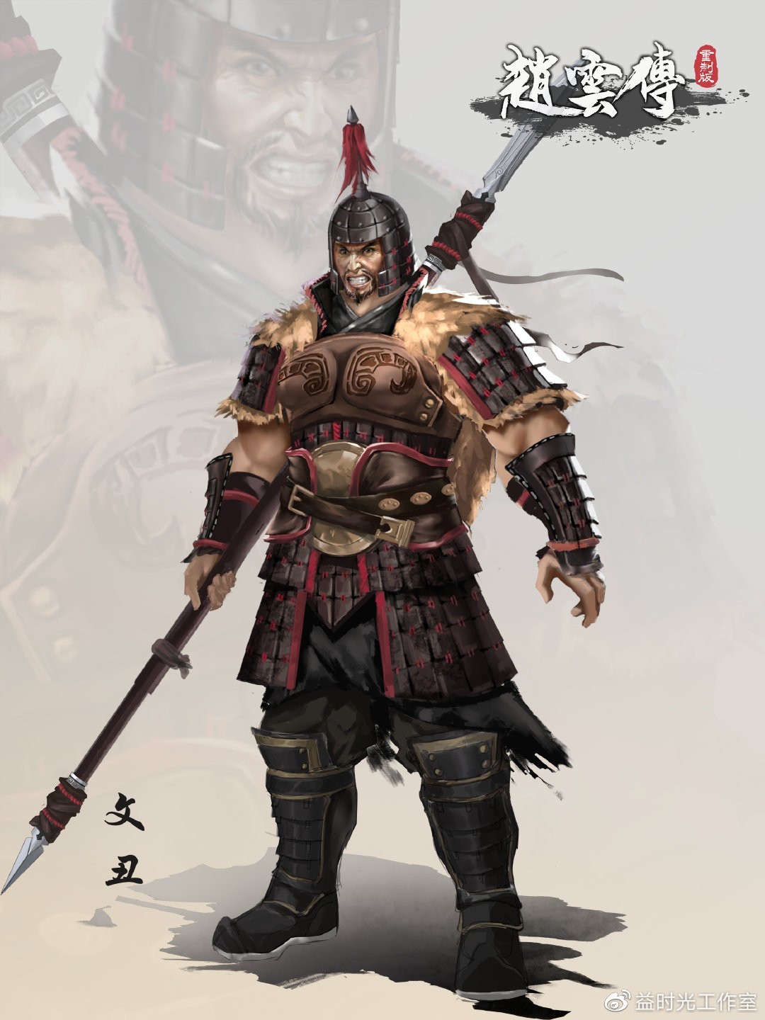 文丑是東漢末期袁紹部下的武將,素有威名,文丑與顏良一起作爲袁紹軍隊的勇將而聞名。作爲袁軍的主力戰將,文丑在袁紹與公孫瓚的戰鬥中一直充當先鋒,所以與公孫瓚麾下的趙雲多次交戰。文丑人物形象史無記載,在《趙雲傳重製版》中以重甲武將示人,武器爲利刃長槍,面部形象兇暴,體現衝在鋒線“一言不合就砍人”勇夫形象。