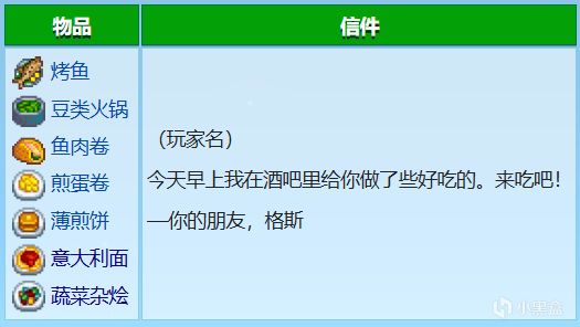 ①只要我們和格斯好感度大於0時,就有概率收到他通過郵件贈送我們的一些食物,好感越高,幾率越大