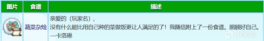 ④當我們與卡洛琳好感達到七心時,會收到她通過郵件寄給我們的食譜:蔬菜雜燴