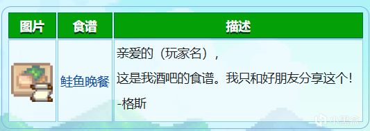 ②當我們與格斯好感達到三心時,會收到他通過郵件寄給我們的食譜:鮭魚晚餐