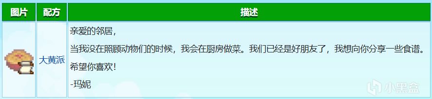 ③當我們與瑪妮好感達到七心時,會收到她通過郵件寄給我們的食譜:大黃派