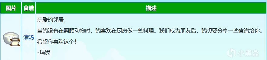 ②當我們與瑪妮好感達到三心時,會收到她通過郵件寄給我們的食譜:清湯