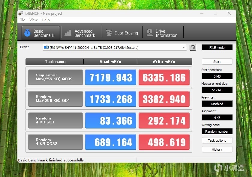 换其他软件看看,TxBENCH,读取7179MB/s,写入6335MB/s。