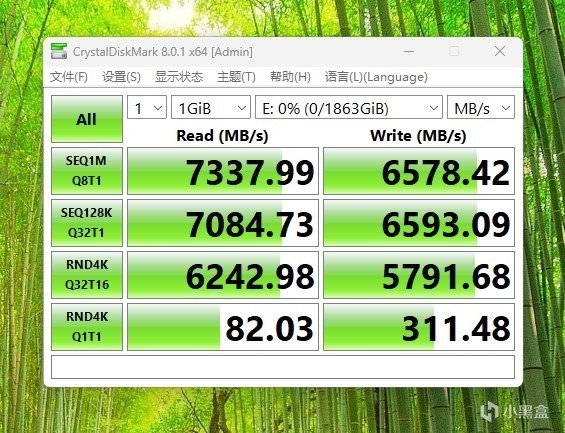 运行CMD进行读写测试,读取7337MB/s,写入6578MB/s,达到了官方宣传的7000MB/s连续读取和6500MB/s连续写入性能。