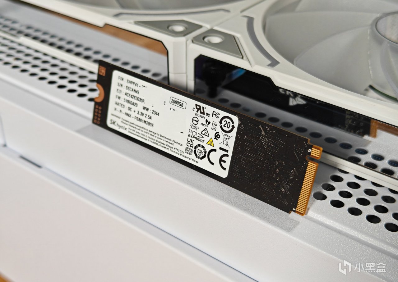 这款NVMe SSD是单面的,硬盘背面是产品的各种信息。可以看到一堆眼花缭乱的各种认证,可见品质不凡,还注重环保。单面NVMe SSD意味着它不仅仅可以用于台式机,更是可以适用于各种笔记本电脑。因为笔记本电脑轻薄,很多的型号由于空间的缘故,不支持双面NVMe SSD,而这款海力士P41 NVMe SSD硬盘则没有这个问题。