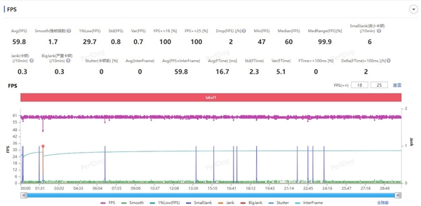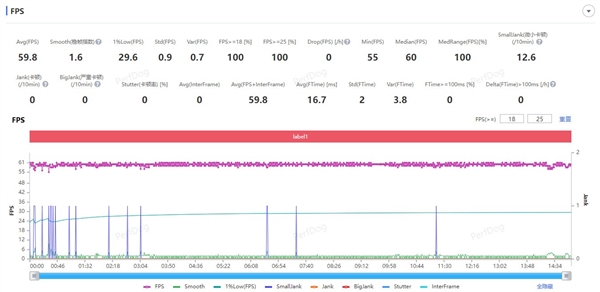 在渲染壓力更大的《崩壞:星穹鐵道》黃金的時刻跑圖測試中,測試畫質設置爲非常高+60幀,經過實測,OPPO Find X8 Pro的平均幀率同樣爲59.8幀,是當下智能手機的天花板水平。