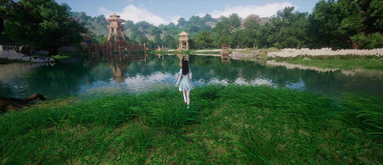 進主城的時候,火子哥我秉承能飛就不走路的原則,準備從旁邊的碼頭直接飛進去。然而,旁邊的碼頭是有一小段過場動畫的。火子哥在飛過去的時候竟然直接觸發了過場動畫。不過這沒什麼,可以勉強接受。但最蚌埠住的是,由於火子哥是在水域上空御劍的,結果就是主角竟然直接落在了水面上,直挺挺的站在了水面上!!!就那樣傻站在那裏,在過場動畫中十分搶鏡,這是在凸顯主角的輕功了得嘛?看完過場動畫後火子哥還以爲系統會直接把主角傳送到岸邊。結果出了動畫後,主角依然在水面上......咱就是說,設計一個看完過場動畫傳送有這麼難嗎?這流程體驗的優化也太草率了吧!!!
