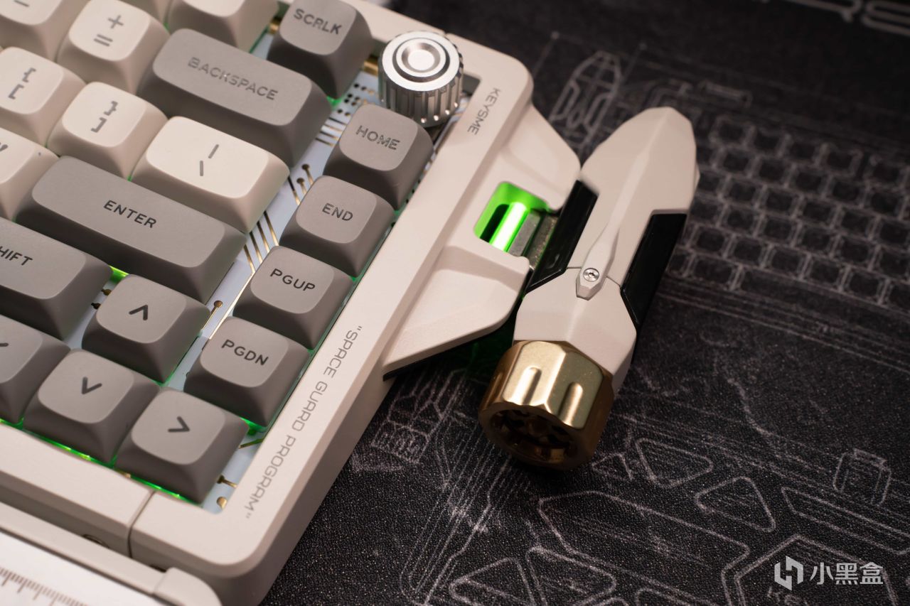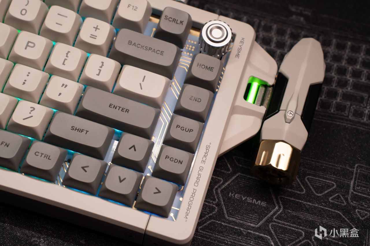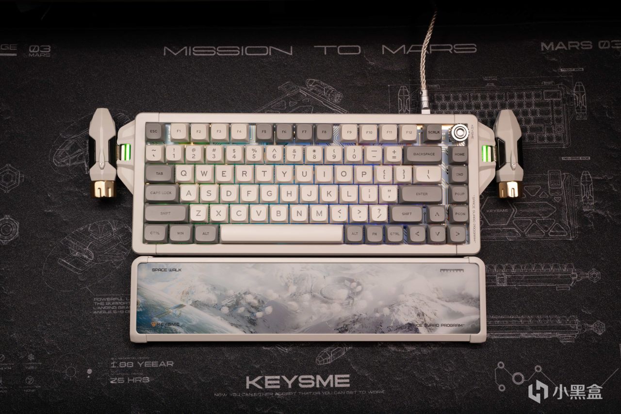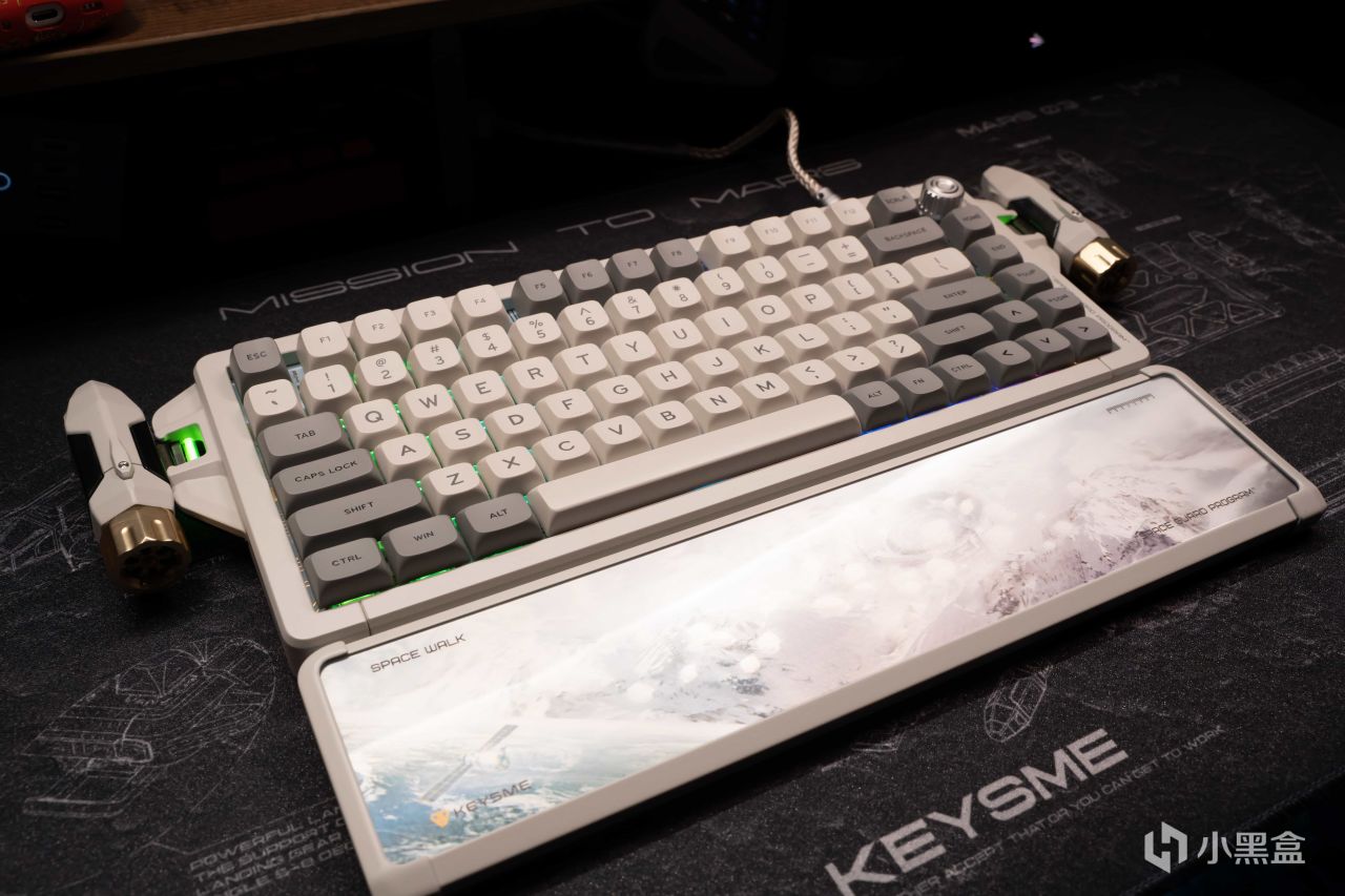 2. 键盘的颜值还是很高的,采用KeysMe他家一直以来的设计风格,两边的小火箭设计的很好看,同时可以拿下来直接用