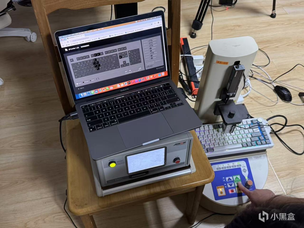 这里我借了一个大佬的荷重仪测试了一下,顶部固定平均在0.1mm左右,这说真的感觉不出来,这相当于一个键盘的触发保护功能,避免键盘因为桌面的晃动而产生的误触。