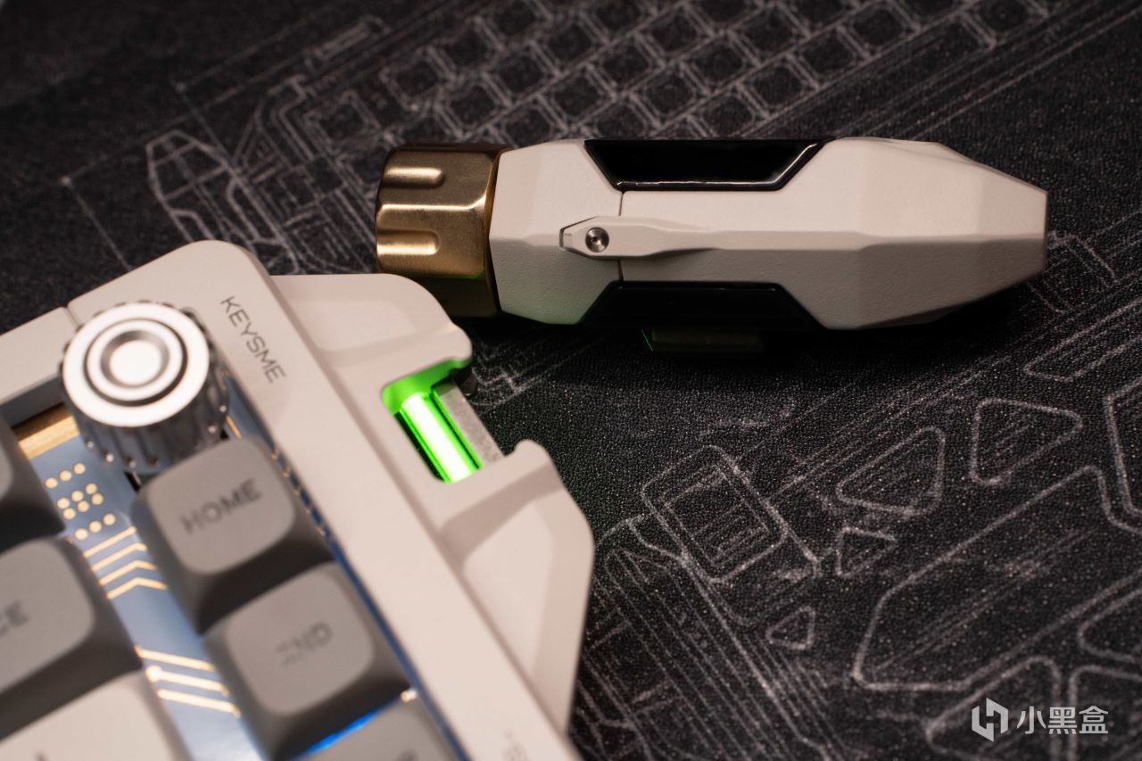 这款小火箭也是采用的全铝cnc的外壳同时底部作为KeysMe的传统做成了可旋转的指尖陀螺,很解压的设计,同时采用磁吸的设计,让小火箭可以直接吸附在键盘上面。