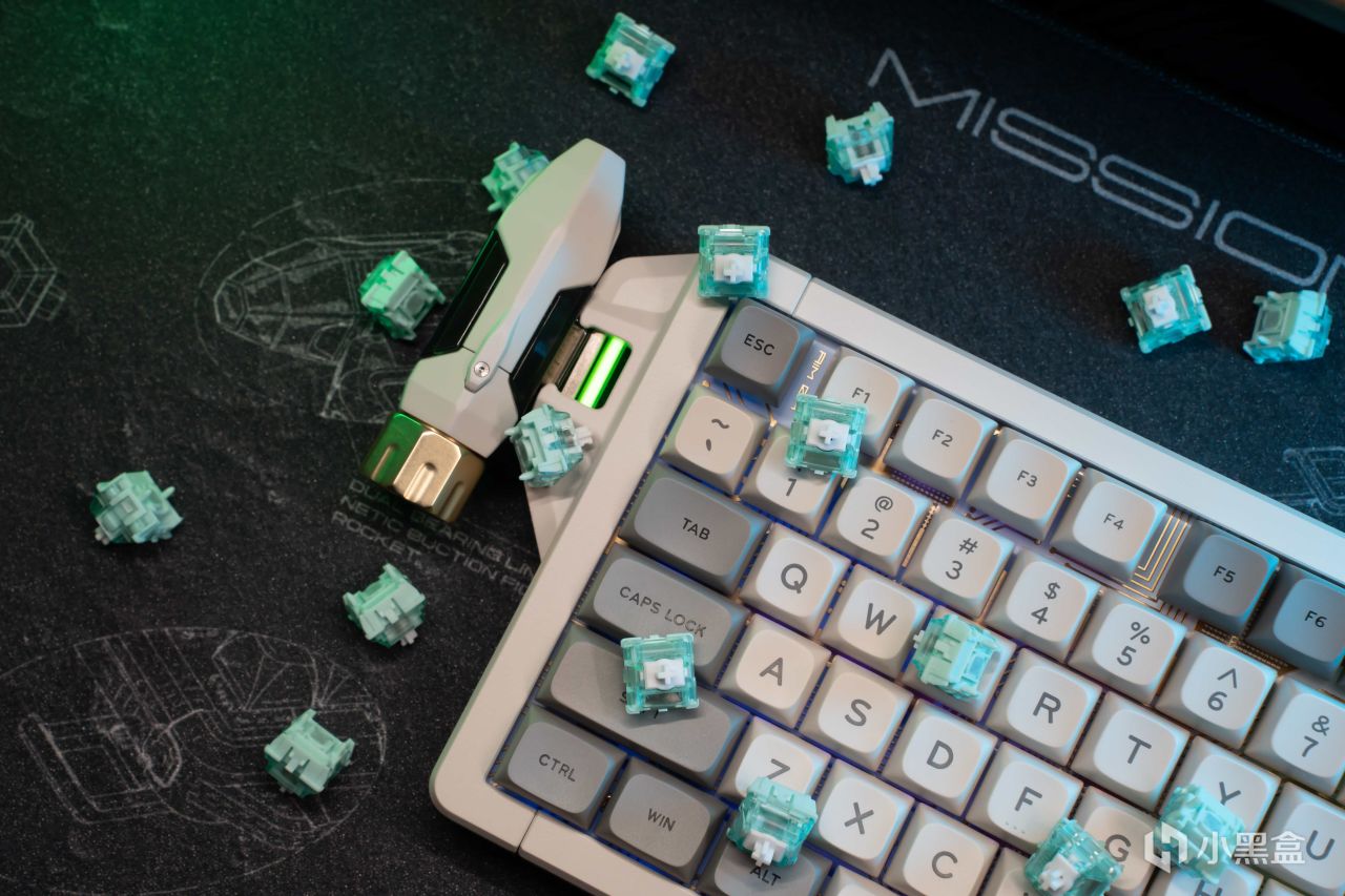 当然键盘还配套了桌垫,小火箭装饰以及手托可以单独选择