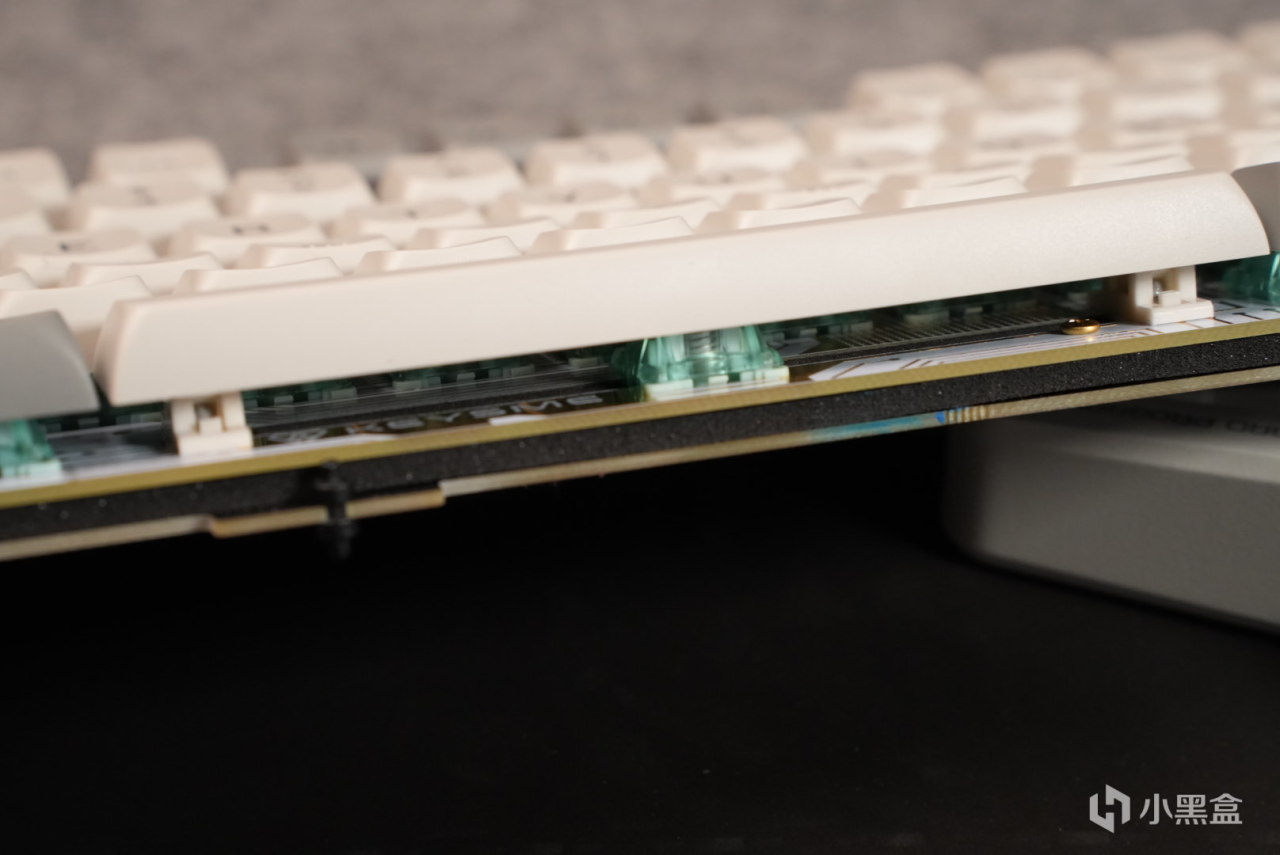 在键盘填充方面,键盘采用了poron夹心棉以及poron底棉的设计,让键盘的消音控制的很好,没有什么空腔音的存在。