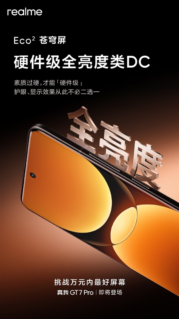 快科技10月22日消息,真我官方今日宣布GT7 Pro将全球首发Eco²苍穹屏,挑战万元内最好屏幕。