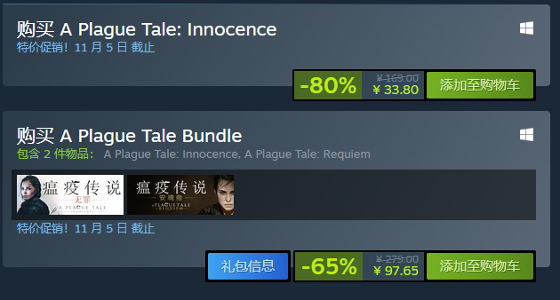 ②:捆綁包:包含《瘟疫傳說:無罪》➕《瘟疫傳說:安魂曲》。