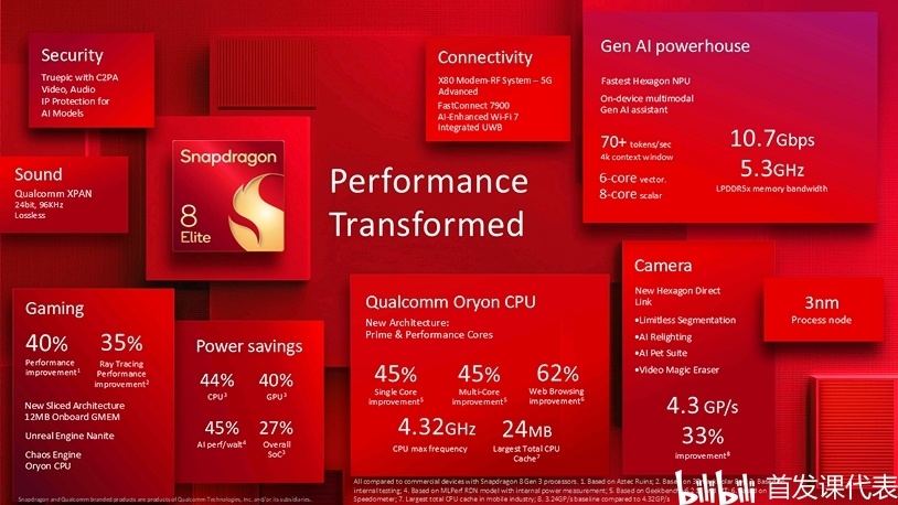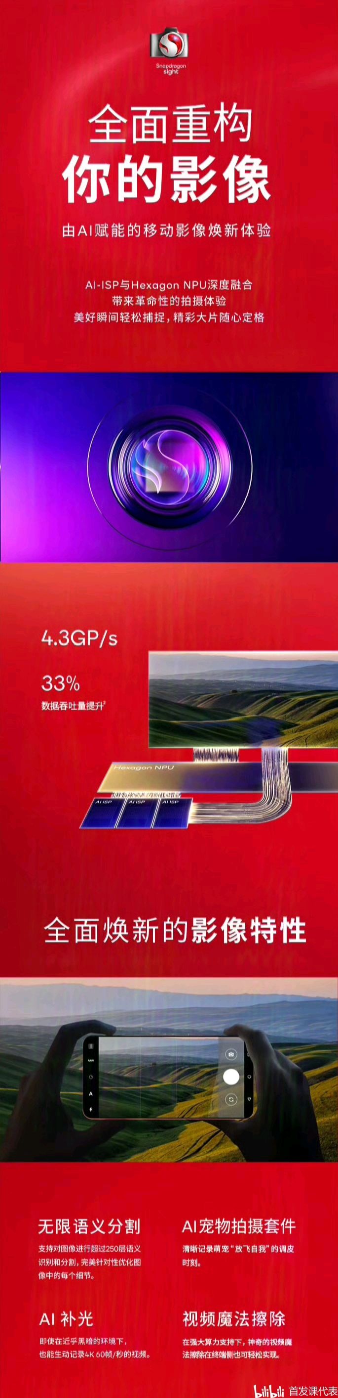 ◆ Qualcomm Spectra ISP:支持無限實時語義分割、超暗光照片和視頻拍攝以及3.2 億像素照片拍攝;