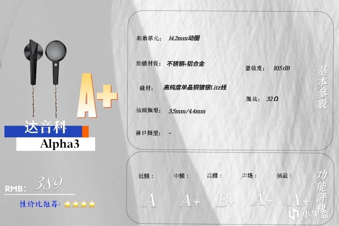 达音科 Alpha3 :389rmb||综合评级:A+||性价比:★★★★
