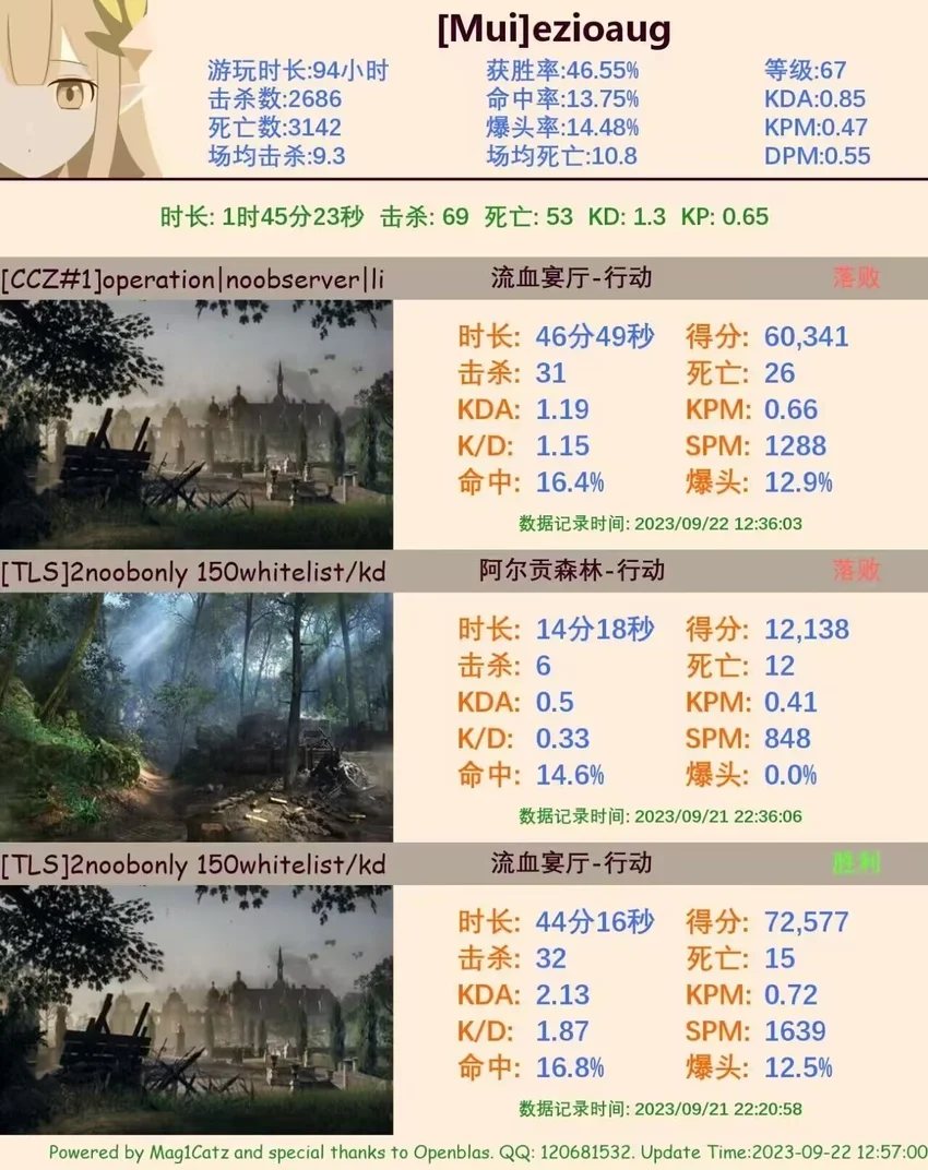 在每一把结束之后可以通过小电视查看自己的数据,复盘自己的亮点和失误。此外,一定要保持良好心态,不要急躁,这只是游戏。如果感觉没手感,压力大,可以换服玩或者直接休息,不要勉强自己。我自己是一个打了一百小时斟茶的人,一年前自己的kp只有0.4,在不断的积累中才打到1.2。我的数据变化可以看图六图七。在我推荐战地一入坑之后又看到很多盒友问如何提升kp,所以写出这篇经验贴。我只能提供自己的思路,很有局限,也希望大家在评论区讨论提出自己的思路,但不要吵架。