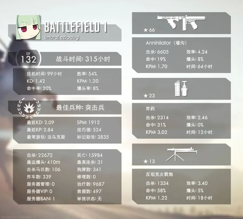 玩了500小时战地一,实在想对当前的社区做出一些贡献,21年买入战地一,没赶上社区最好的时候,自己能力有限,最多只能做做攻略,但我真的很喜欢战地一,即便最近面对eaac,我也至少会坚持打完我的百星汤目标。谢谢大家看到这里。