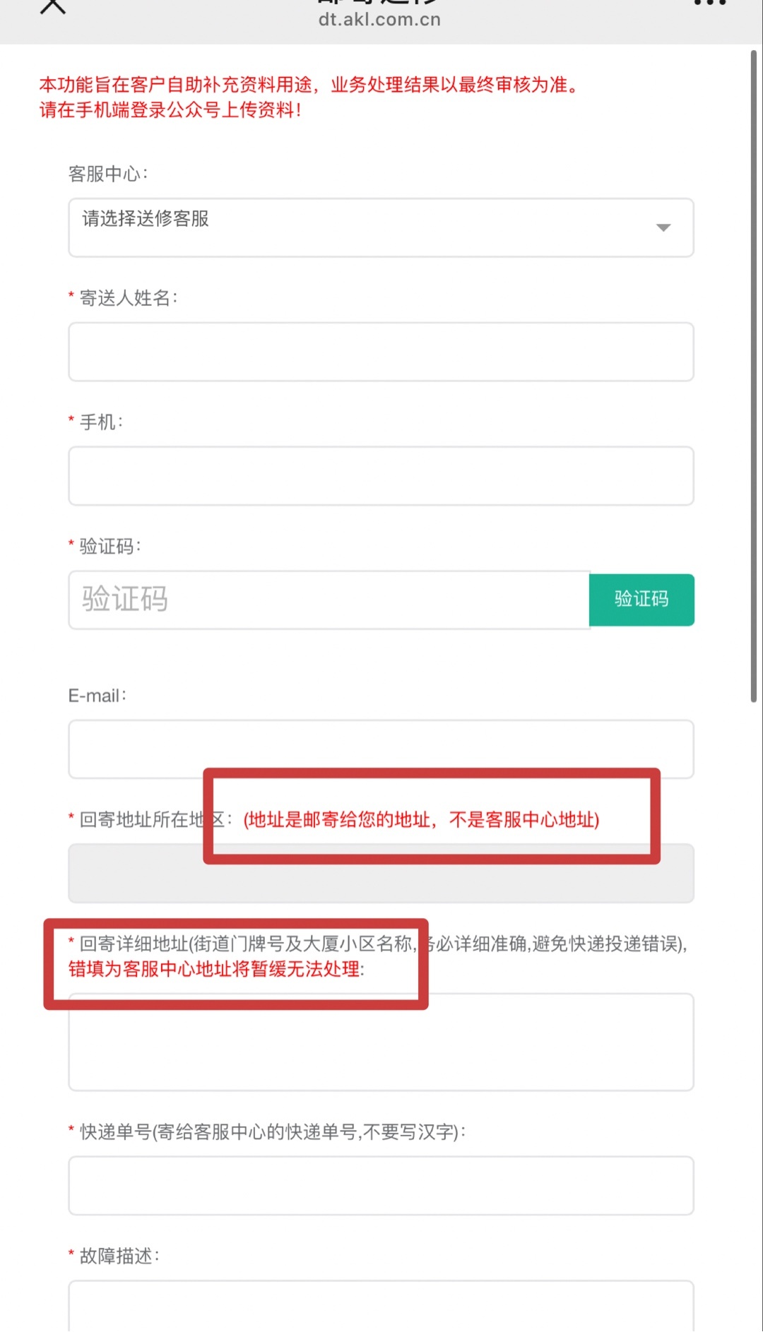 线上(邮寄)售后流程