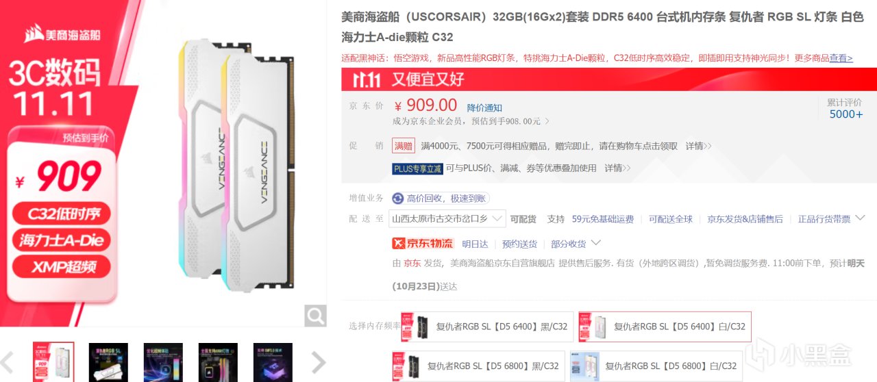 內存的話,選用了美商海盜船的32GB套裝DDR5 6400臺式機內存條——復仇者RGB SL燈條,是一款集高性能與個性化燈光效果於一體的內存產品。該內存條支持DDR5 6400MHz高頻率,提供卓越的數據傳輸速率和響應時間,適用於追求極致性能的遊戲玩家和專業設計師。