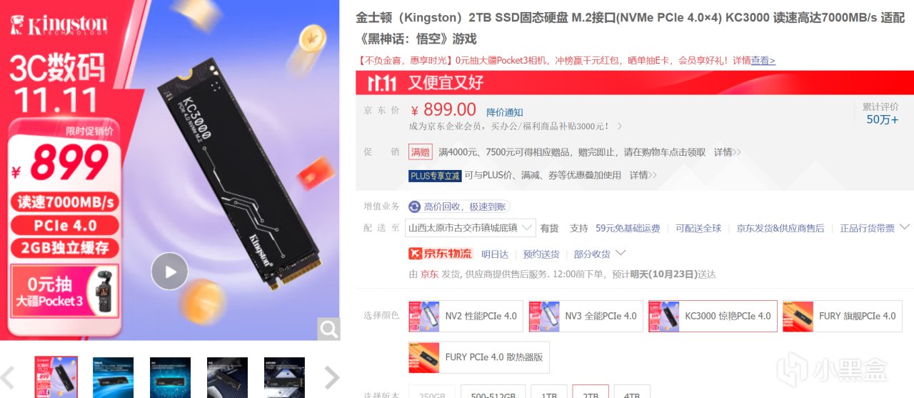 固態硬盤SSD方面,選擇了金士頓 KC3000 2TB,該SSD擁有旗艦級的7000MB/s讀速,性能非常出色,而且有2G外置緩存,長時間讀寫不會掉速,重要的事情說三遍!!!