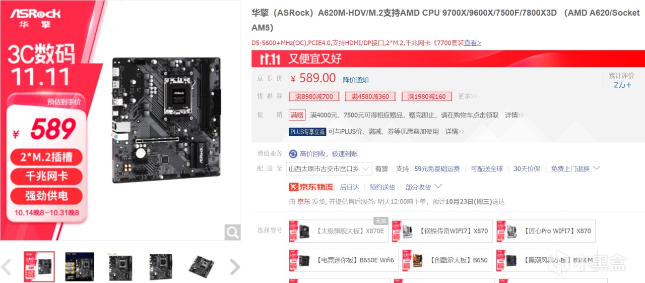 華擎A620M-HDV主板採用了4+1+1相供電、Dr.MOS優化方案等設計,確保電源的穩定性和高效性。同時,其散熱性能也十分出色,能夠有效地保證電腦在高負荷運行時的穩定性和耐用性,這款主板支持DDR5 5600+MHz (OC)內存,這使得計算機在處理大量數據和運行多任務時能夠更快速、更流暢。在擴展性方面,華擎A620M-HDV主板提供了豐富的接口和插槽,包括多個M.2插槽,支持最新的PCI Express 4.0傳輸協議。此外,它還配備了多個USB 3.2 Gen1接口,方便用戶連接各種USB設備。如果對品牌要求不高,在意顏值的話,也可以選擇七彩虹BATTLE-AX A620M-GHA WIFI V14這款主板。