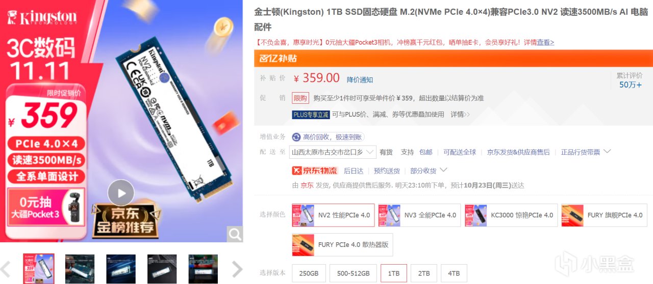 SSD方面,選擇了金士頓 NV2 1TB版,作爲QLC的排頭兵,金士頓NV2 1T是一款性能出色的固態硬盤,它採用了NVMe PCle 4.0x4高速通道,在性能方面,金士頓NV2 1T的順序寫入速度高達2100MB/s,順序讀取速度更是達到3500MB/s,這足以滿足日常使用中的各種需求。此外,金士頓NV2 1T的總體寫入量達到了320TBW,這一大容量設計意味着它可以存儲大量的數據,爲用戶提供了充足的空間。