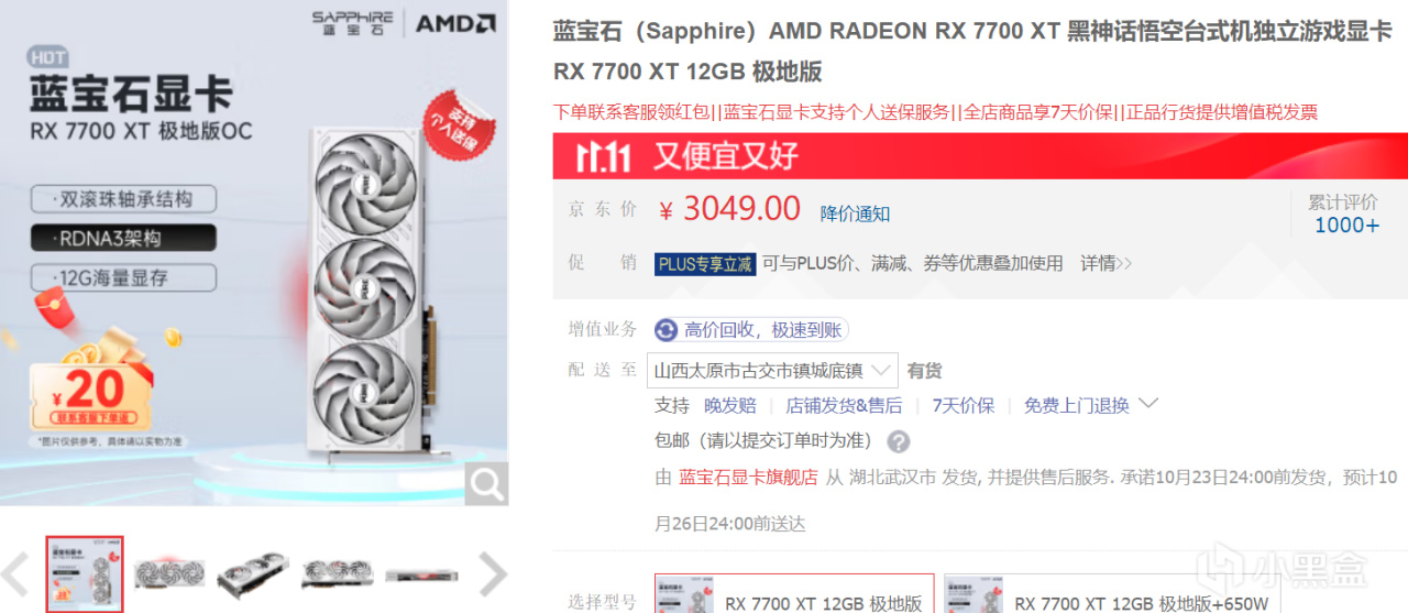 適當提高預算,藍寶石RADEON RX 7700XT極地版顯卡也是可以考慮的,這款顯卡採用了雙8pin的供電接口,TDP(熱設計功耗)爲245W,這意味着在滿負荷運行時,顯卡的功耗控制也相當出色,建議配備不低於700W的電源。