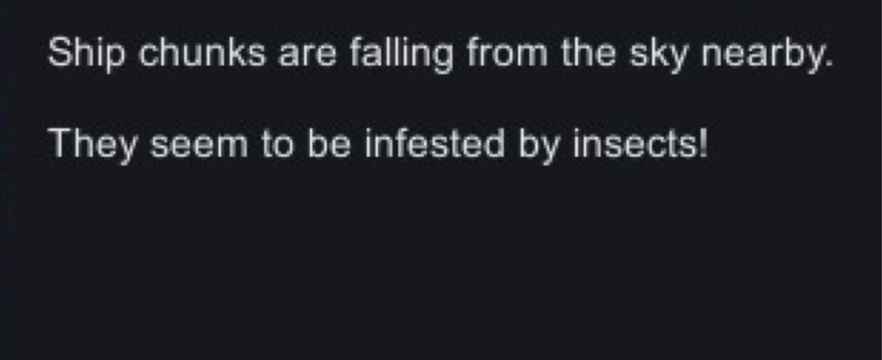 圍牆被巨大的動能擊碎了,幸運的是拖拉機、雷達、磁軌炮這些重要設施都安然無恙,但是數不清的蟲子正從這些飛船殘塊中爬出!