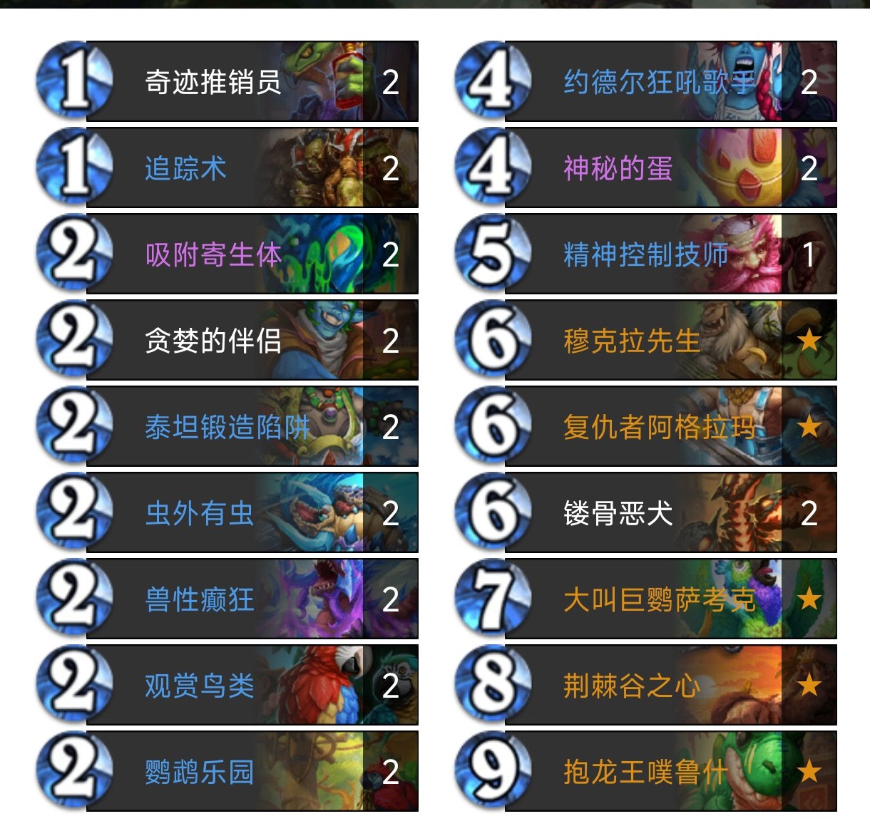 卡組代碼:AAECAZICKK6fBP3EBazRBf3fBZ/zBdv6BYWOBqmVBruVBryVBr+VBsGVBtecBticBtqcBs2eBpqgBqCgBqKgBsekBq+oBuqoBv2oBu+pBoexBqqxBsO6BtW6BqS7Boa/Bq7ABrHBBrrBBvPKBrrOBqfTBszhBvflBvHmBsnoBgAAAQbNngb9xAWgoAb9xAX1swbHpAb3swbHpAbzygb9xAXu3gbHpAYAAA==