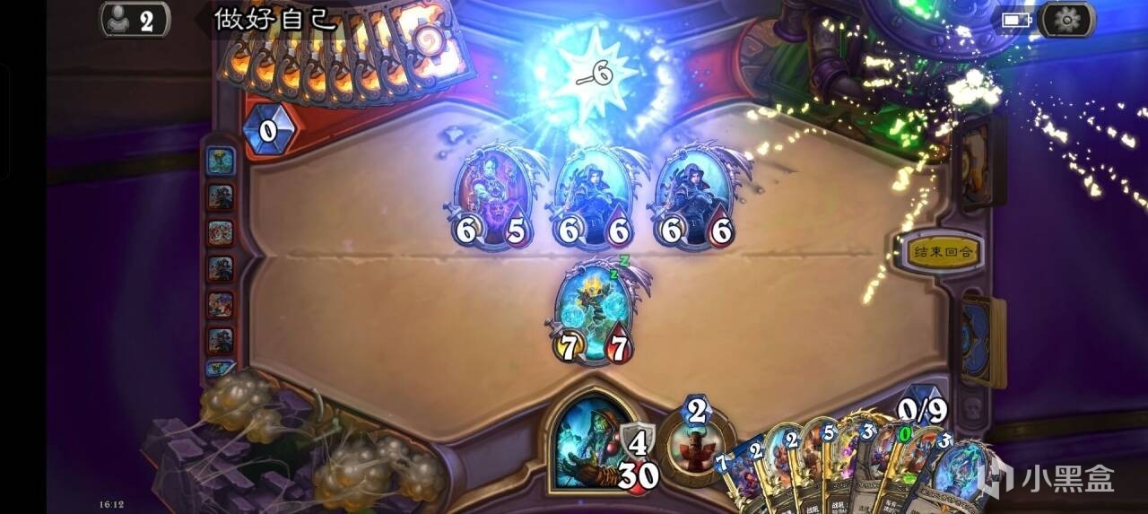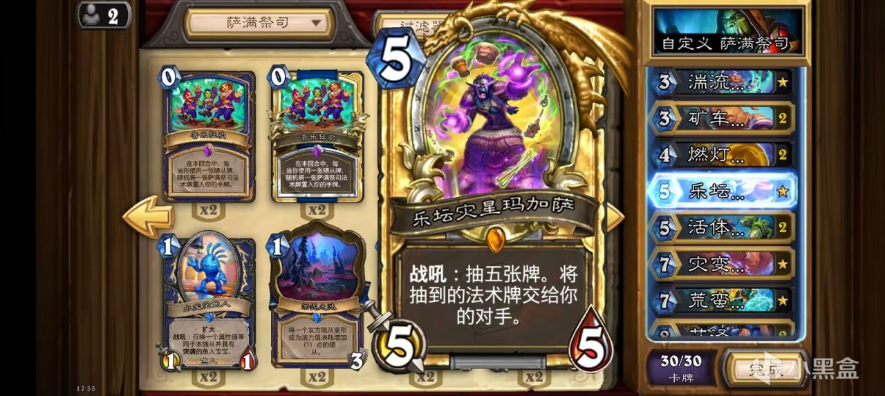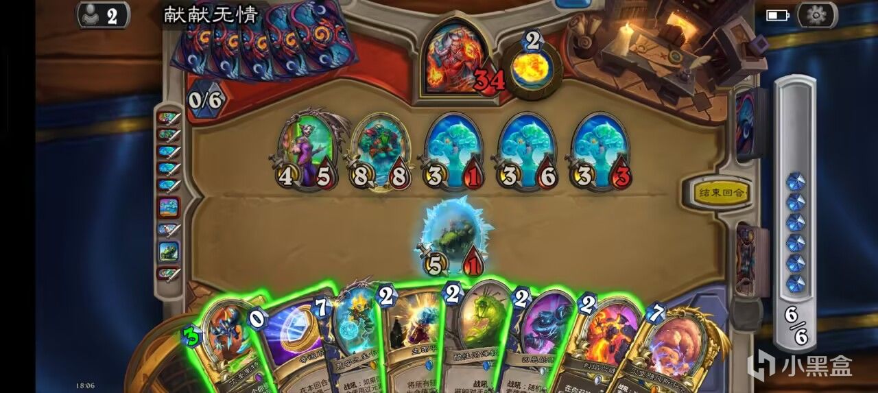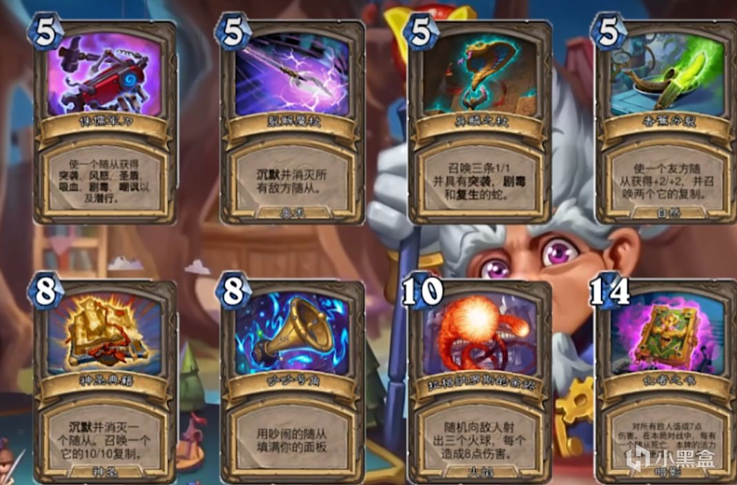 后期开了轮盘后我们可以用术士泰坦+大王每回合召唤一个6/6+两个3/4嘲讽小鬼,搭配上术士的两张一费礼物,足足有四张扭曲虚空,撑过轮盘的五个回合要求可谓是绰绰有余了。