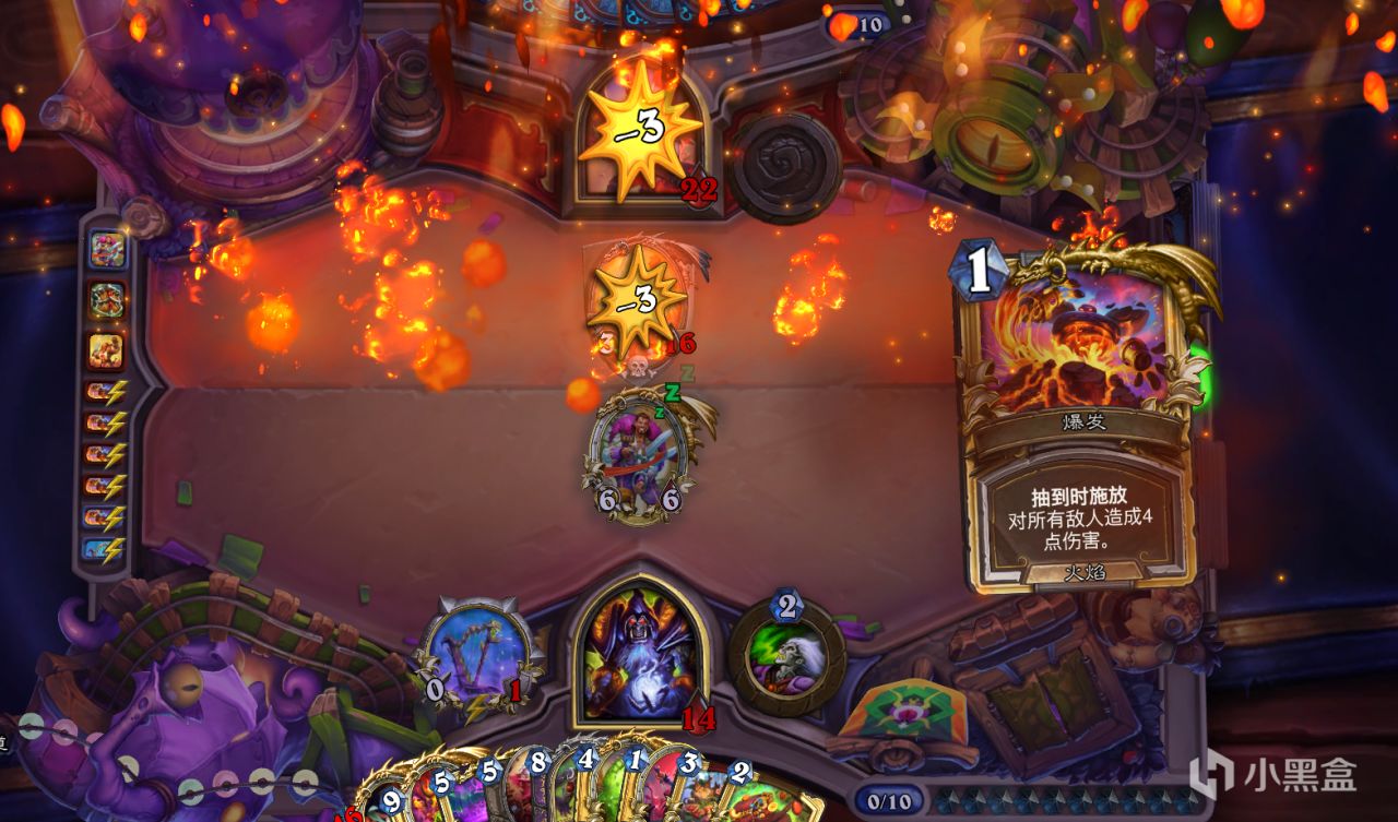 打后期卡组.....:下方这张图是我们傻子贼的完全体6个风怒,哪怕全是二傻子起步也有48点场攻,这样的攻势只要不是太霉比正常都能重复六波!六波啊!六波傻子啊!正常来说这样的卡组在后期已经无敌了对吧?可是打战士,他能给你六波全!部!解!完!雷诺一拍然后往你牌库里塞炸弹,傻子头头被炸掉了,完蛋!回手牌被炸掉了,晚一回合完蛋!四舍五入都是完蛋,奶奶滴跟本打不过。