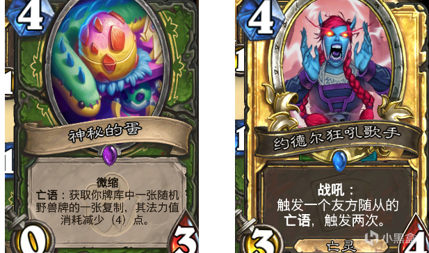 劣天胡法术法,嗯,没有任何一套卡组打得过天胡法术法。遇到你就赶紧跑吧,说真的。对战其他的卡组正如我开头所言全部都是55开,全看你找不找得到蛋最劣势的情况已经说完了,接着来说说起手蛋+约德尔狂吼歌手怎么玩,根据敌方不同的卡组我们要选择性的将牌库里面的野兽卡抽出来,以保证我们蛋的稳定检索(进阶玩法,除非对面是快攻否则可以不用急于去这样操作)