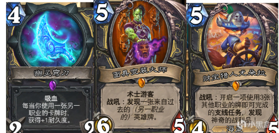 嘛,别看是娱乐卡组,其实剽窃贼本身超模的卡还挺多的,目前标准剽窃贼能提高胜率的主要是这三张卡:刀、英雄牌、宝藏,面具找古夫、尤多拉找宝藏?什么古夫副本?给我干哪个版本来了?