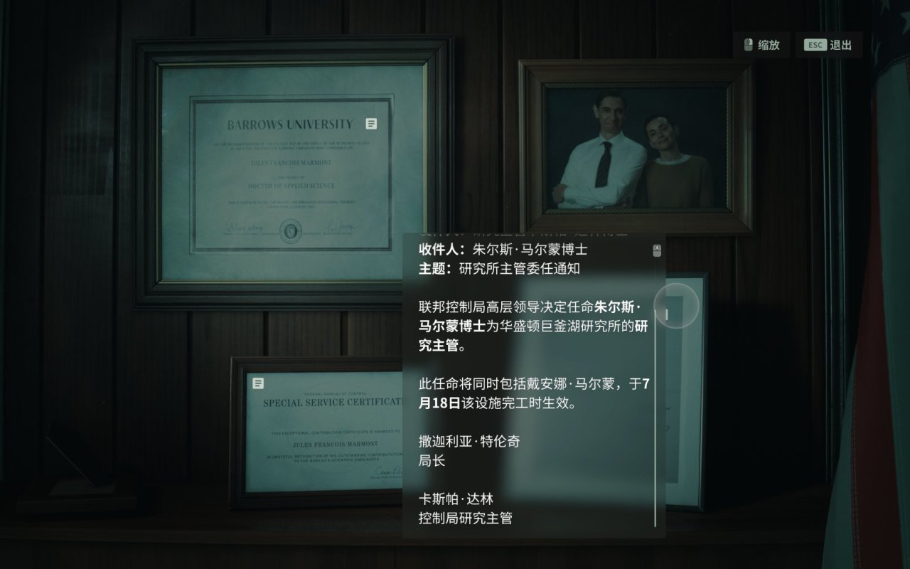 關於不變的一部分,如果你查看遠處牆上掛的文憑和證書,你會發現一份任命通知,上面記錄着湖邊小屋設施於7月18日完工,這爲我們提供了日期“18/07”。