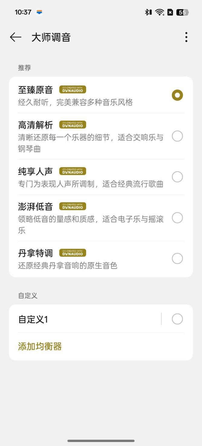 如果大師調音能像降噪模式一樣推出一個智能切換模式,無需用戶手動設置,系統會根據不同曲風的音樂自動調整大師調音的風格,想必可以爲用戶帶來更好的音質體驗。