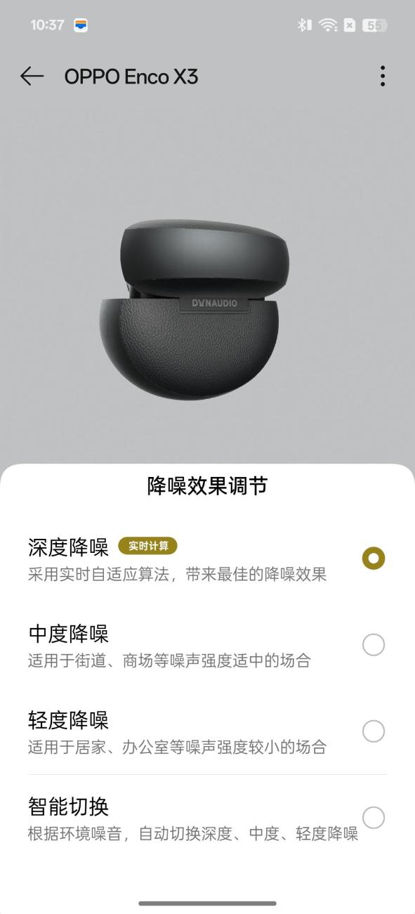 降噪方面,Enco X3包含三麥克風和骨傳導麥克風,最大降噪深度提升至50dB,有效降噪頻寬可達5500Hz。OPPO表示,對比上代,Enco X3的人聲降噪提升了2倍。深度降噪模式下,根據噪聲環境、每個人耳道和漏音情況,結合實時自適應算法,Enco X3能夠以每秒800次的算力實時生成降噪曲線。
