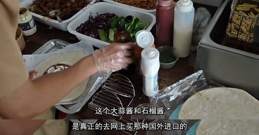 我見到的一位店主,便是靠純手動切肉放配料加捲餅,在我下單到喫完捲餅的十分鐘時間裏,應付了三單外賣訂單,捲餅的手一刻閒不下來。再怎麼說,現實中的商家也不會像一些擺爛流玩家那樣,只給顧客喫白餅,最後還有錢拿。我邊喫邊想,這位店主理應準備一臺自動切肉機。