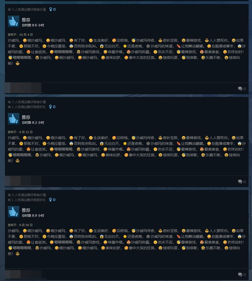 這一方面可以認爲這是踩到了當下的“AI抽象”紅利,以至於迅速被轉化爲新興網絡梗,成爲一種社交貨幣。身邊的朋友和關注的Up主前一天還會把“沙威瑪”跟沙琪瑪搞混,後一天就忍不住輕哼“有了你(沙威瑪)生活美好沒煩惱”——到了這一步,遊戲本身到底好不好玩就已經不再那麼重要了。
