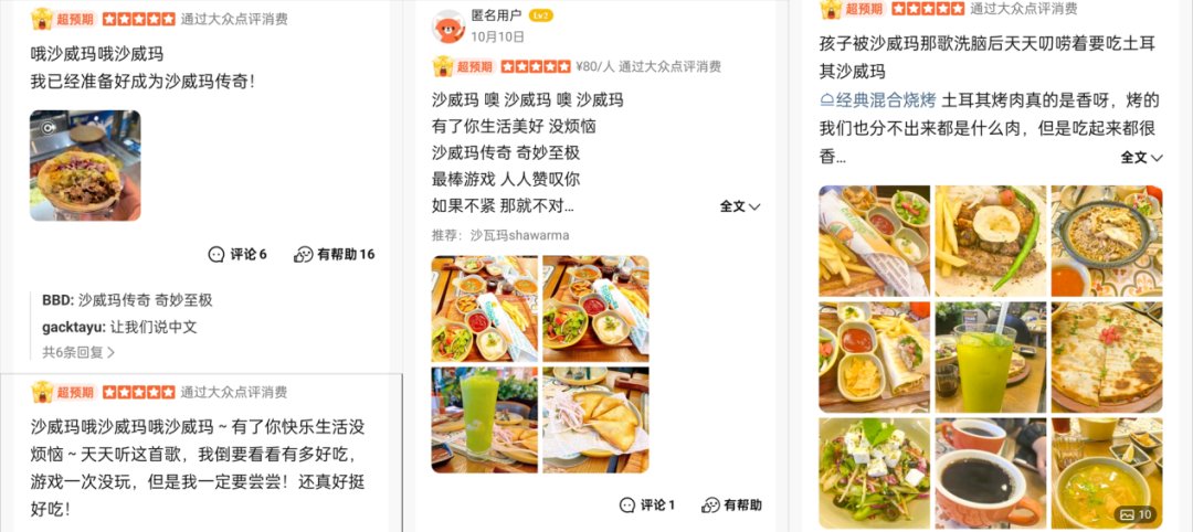 此前本來就在做沙威瑪的中東餐館,更是接連收到了大量沙威瑪捲餅訂單,以及App上湧入的好評。評語裏不一定有實質內容,經常出現複製粘貼來的、意義不明的、由AI創作的《沙威瑪傳奇》主題曲歌詞:“沙威瑪傳奇,奇妙至極……”