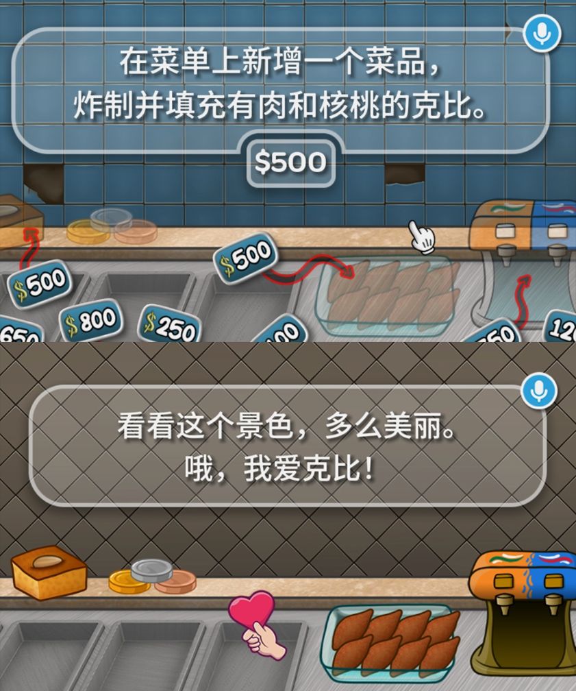 在這之後,隨着店鋪升級,玩家可以往餅添加更多種類的輔料,以獲取更多利潤,也可以選擇升級自動化系統,讓自己操作變得輕鬆些。