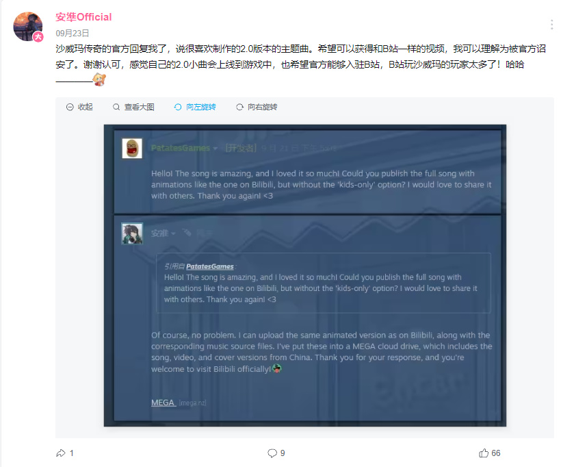 當遊戲在中國走紅之後,作者也沒少表達對國人玩家的感謝,包括主動去給一些中國玩家使用AI創作的遊戲衍生曲點贊。