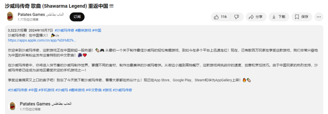 在阿拉伯語地區,《法拉費爾之王》的影響力倒也不容小覷,很可能並不遜色於《老爹漢堡店》如今在國內的地位。僅在谷歌商店,遊戲的下載次數就超過500萬次,遠超目前還只有100萬次的《沙威瑪傳奇》。