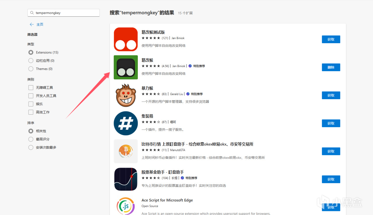 接下來就是這個畫面,再搜索temper,選中tempermonkey下載